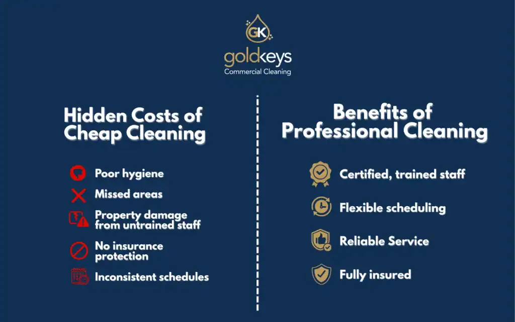 If you run an office, retail store, medical clinic, or industrial facility, maintaining a clean environment is critical to your success. When budgets are tight, it’s tempting to pick the lowest-priced cleaning quote. But beware: that “cheap” cleaning deal can backfire and end up costing far more in the long run. In this post, we’ll explore why cutting corners on cleaning services often leads to hidden costs. We’ll also compare budget cleaners vs. certified professional cleaners (like Gold Keys Commercial Cleaning on the Gold Coast) and highlight the long-term value of quality cleaning.